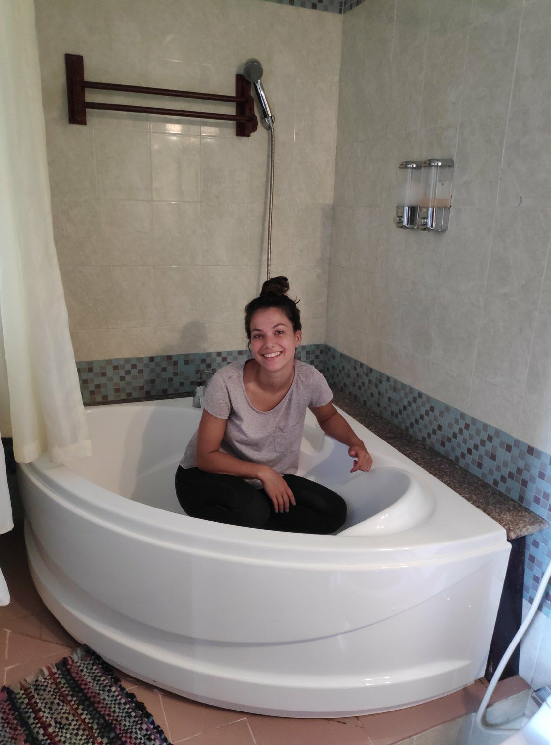 Na drie nachten zijn we tien minuten verder naar een hotel met zwembad verplaatst. Het geluk was met ons, want het was een (uitzonderlijke) zonnige dag!