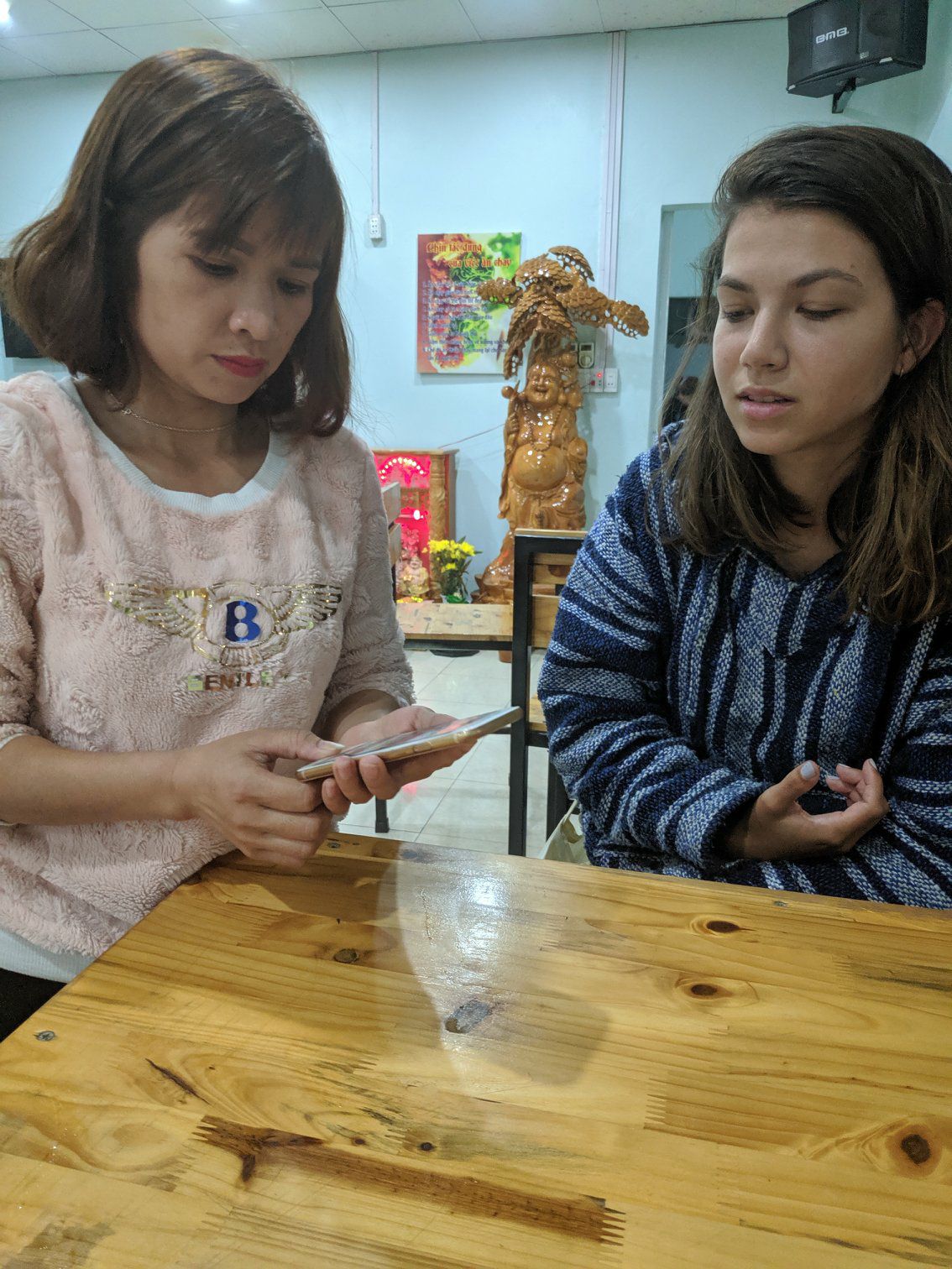 In Cao Bang zijn we s'avonds naar een vegetarische tent gereden. Er waren geen enkele andere gasten te bekennen wat wij naderhand ook begrepen. Het bestellen ging geheel via Google Translate wat een leuke ervaring was. Het eten was niet per se smerig, maar gewoon heel zuinig.