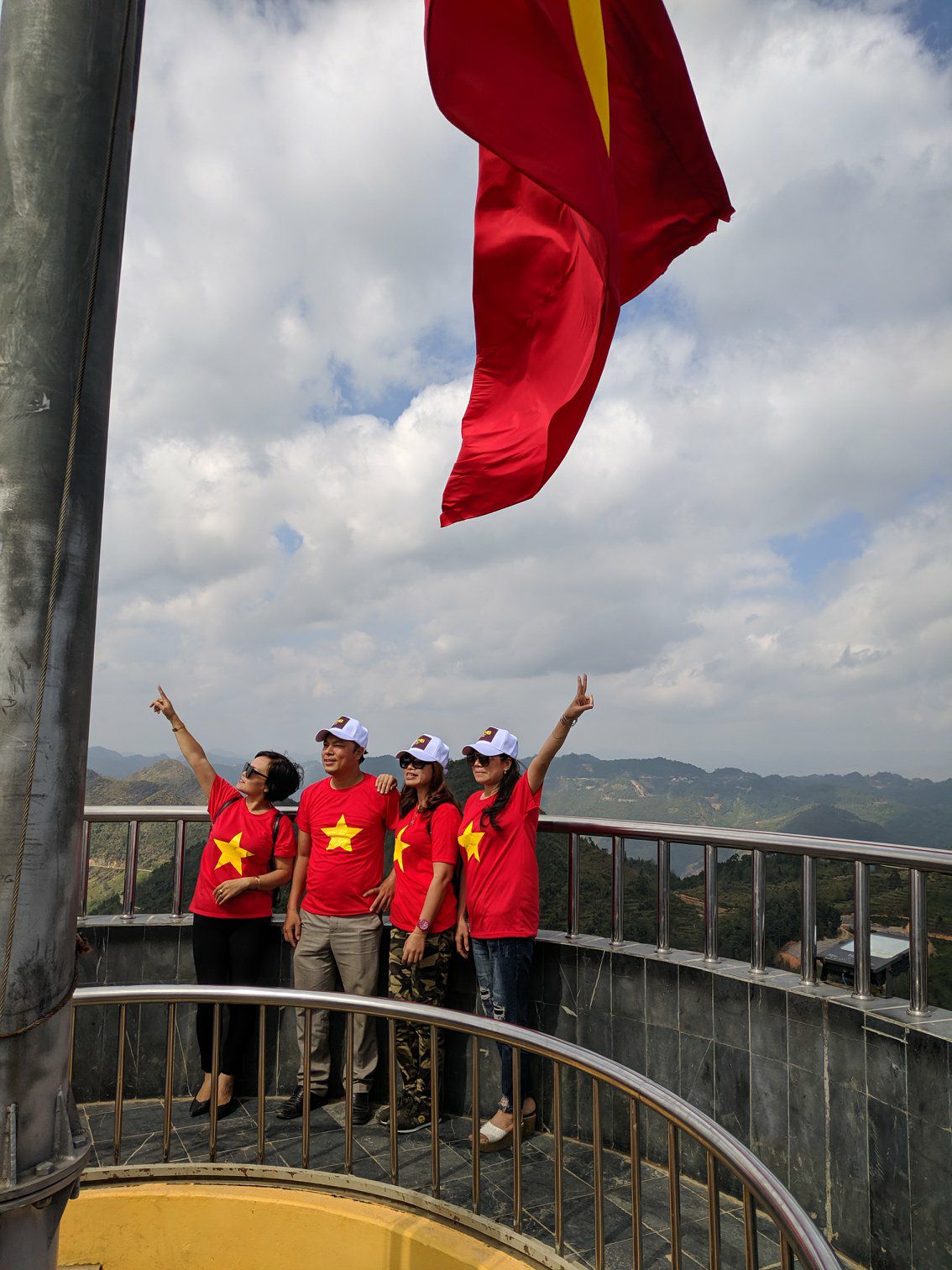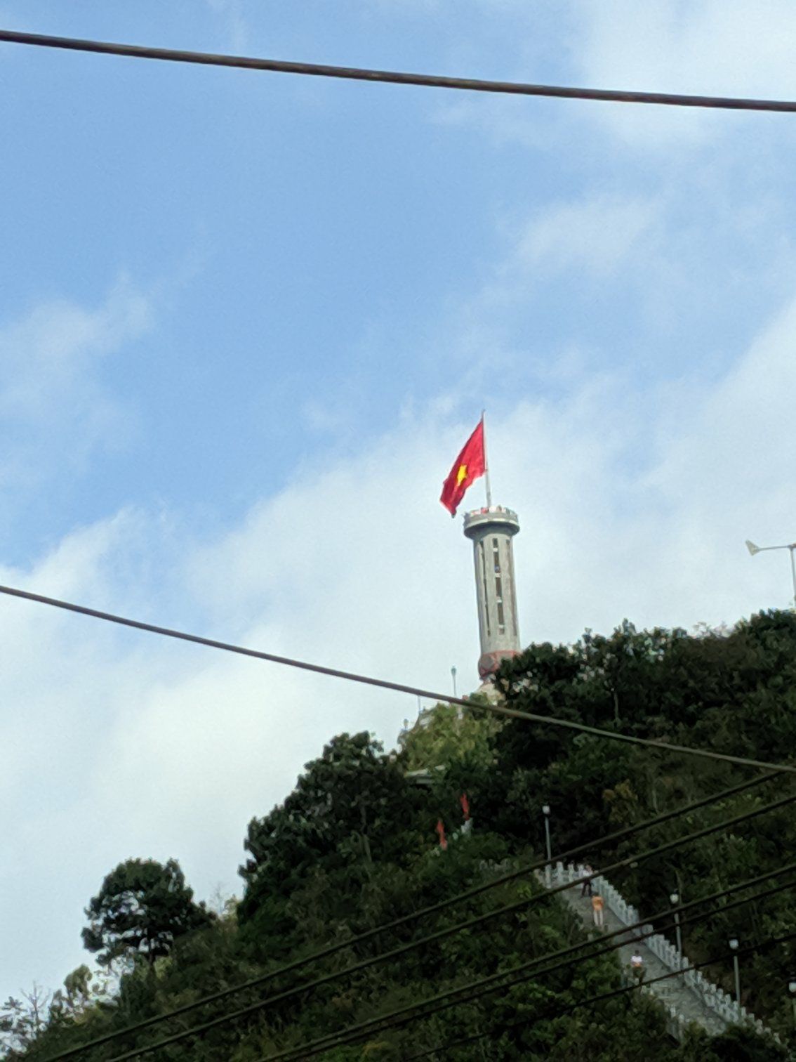 Als eerste zijn we s'ochtends naar de flagpole gereden. Niet heel bijzonder, maar leuk om alle enthousiaste Vietnamezen in hun Vietnam T-shirts te zien. Vanaf deze plek konden we de bergen van Zuid-China zien liggen.