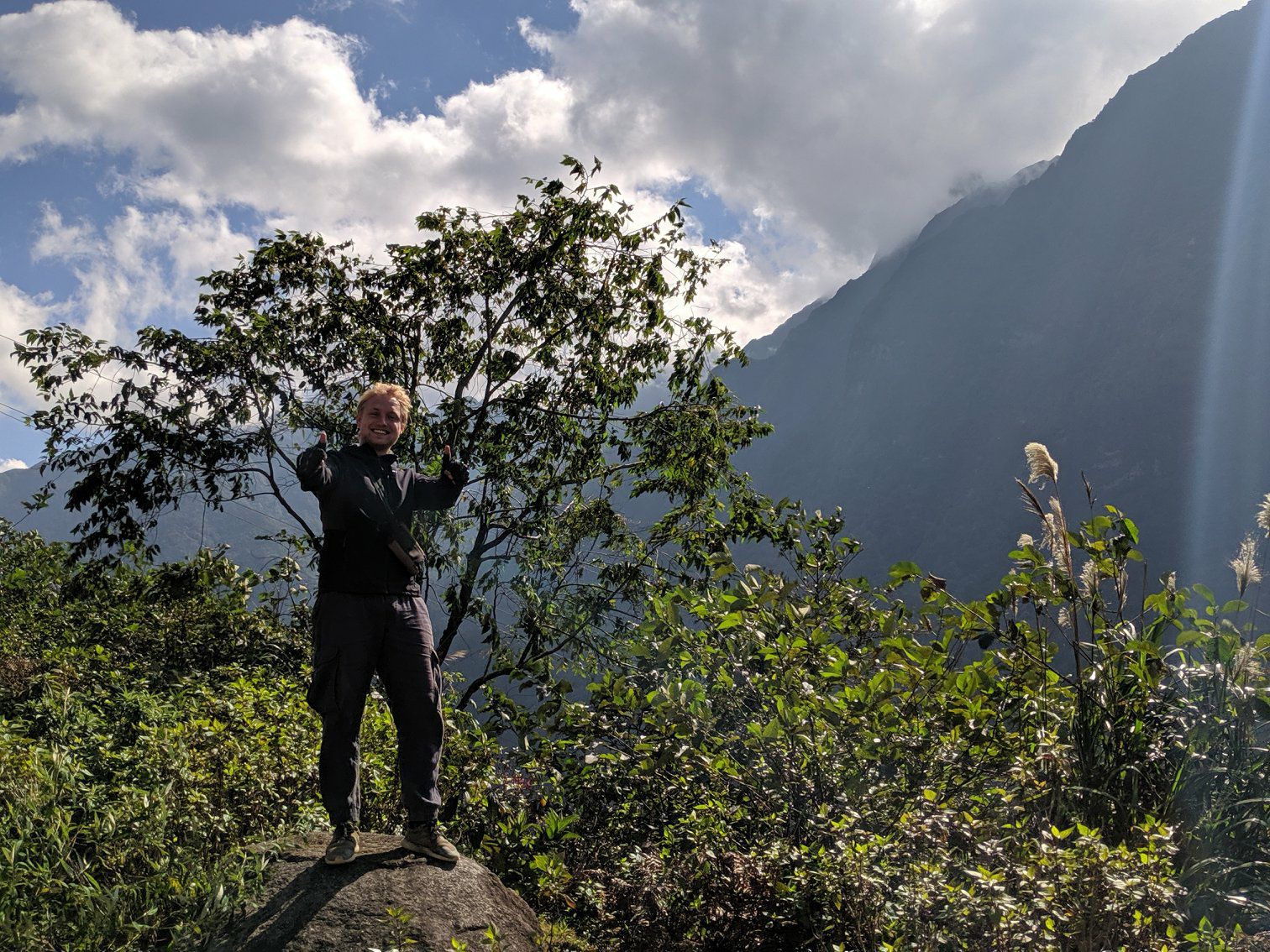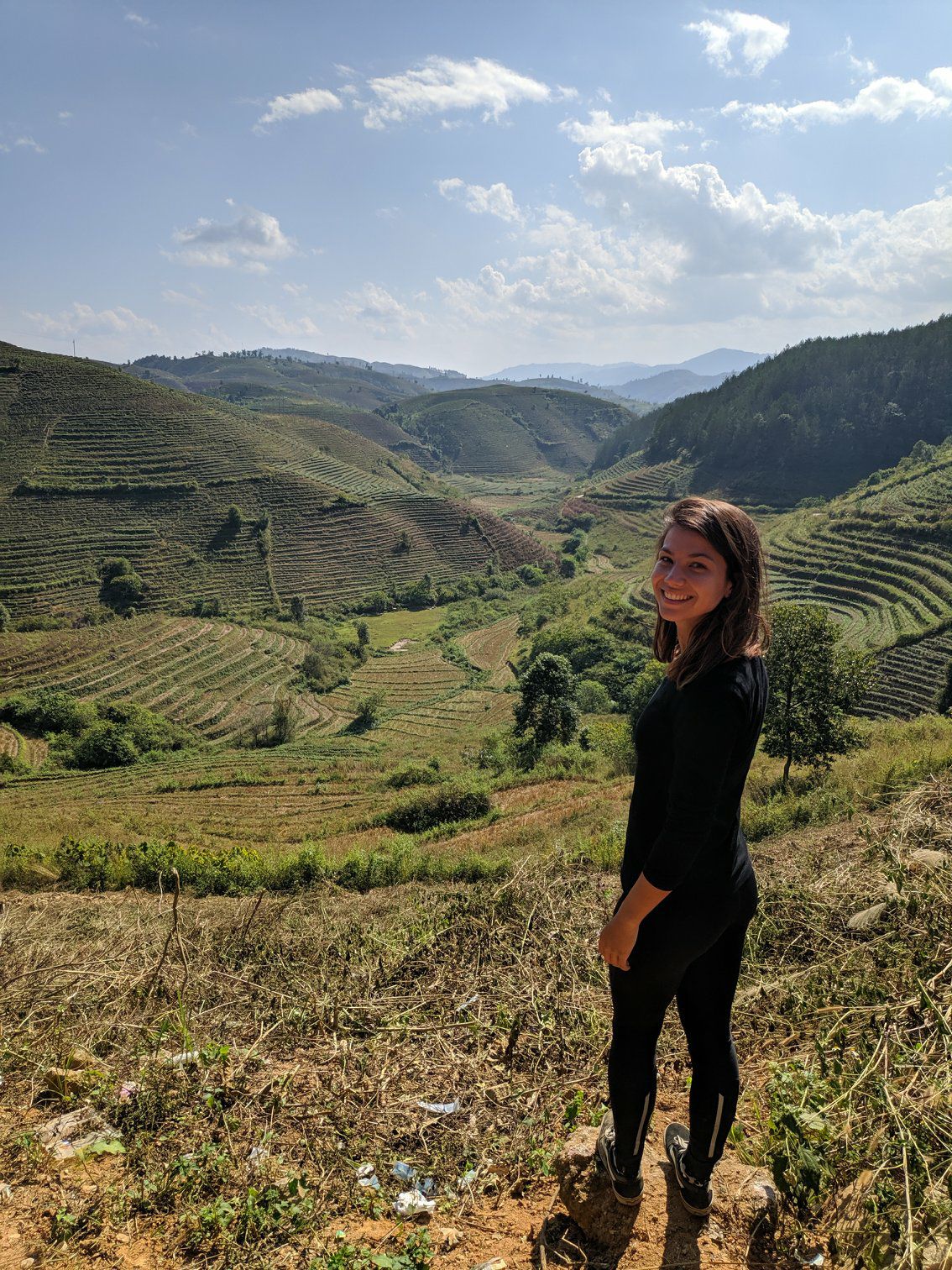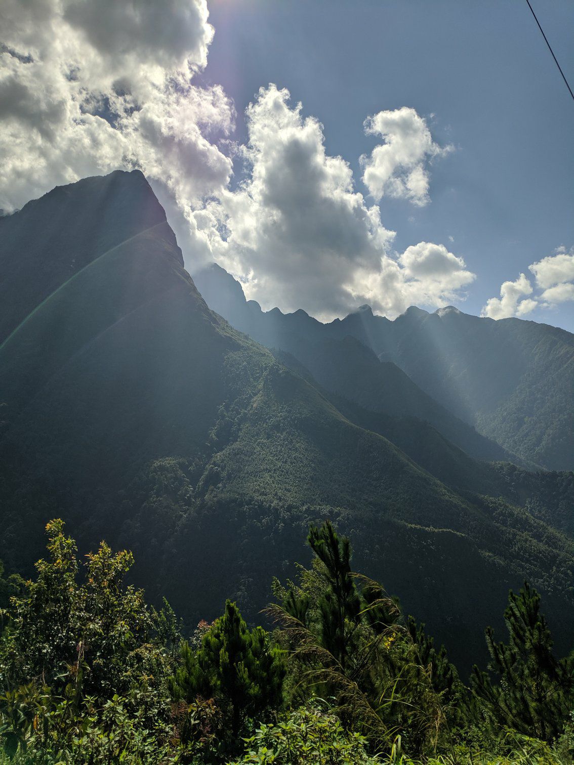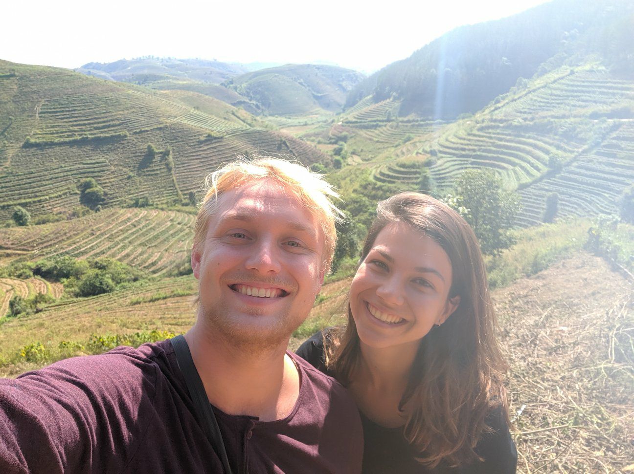 Onderweg hadden we onze vierde lekke band van de reis. Hier keken we niet echt meer van op.. In de vijf minuten die de monteur nodig had om de band te verwisselen kreeg Lins nog een baby in haar armen geduwd. Na de nodige (ongemakkelijke) foto's zijn we verder gereden naar de homestay. Deze lag boven op een berg en vanaf hier hadden we een prachtig uitzicht!