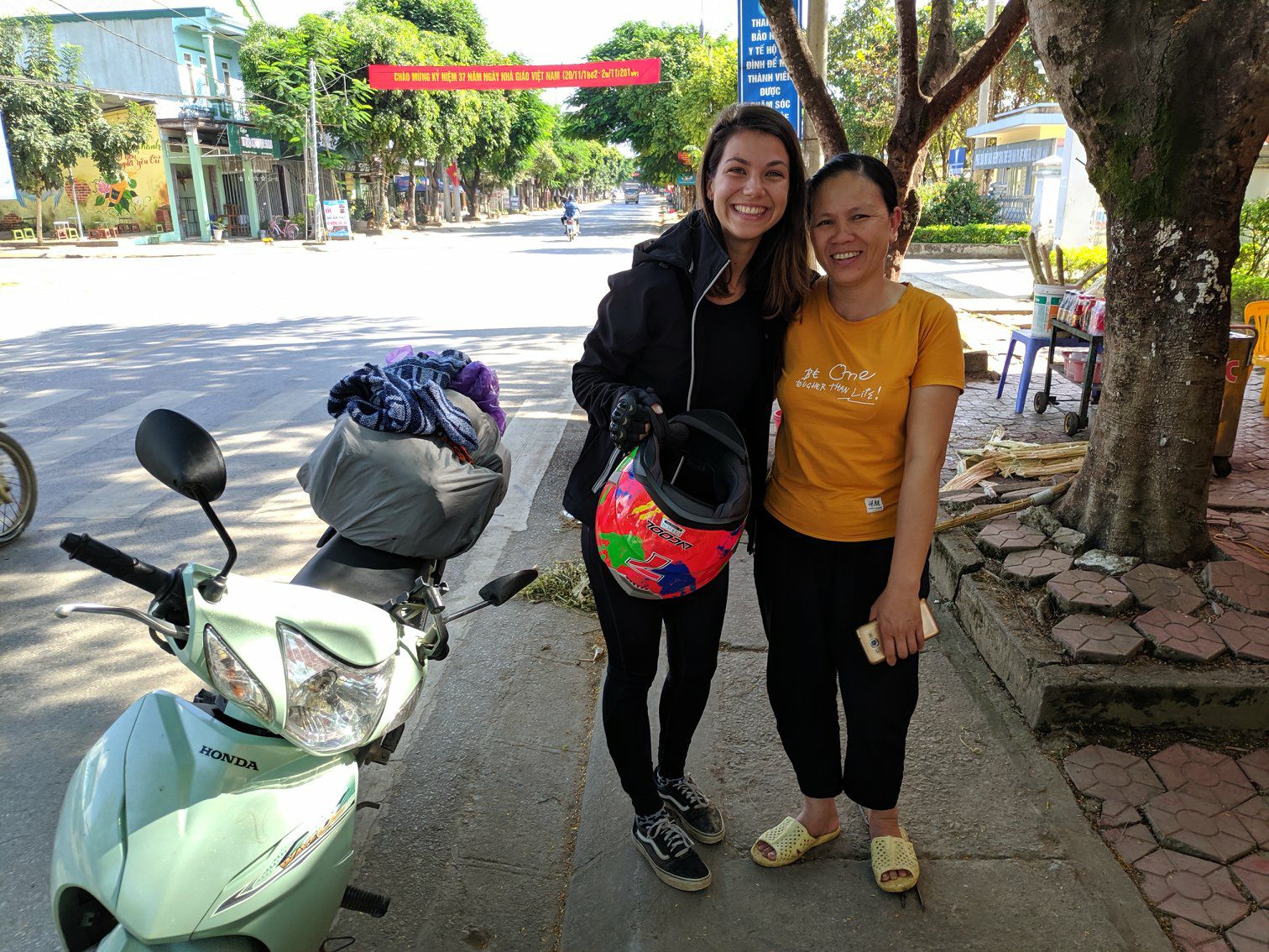 Onze ene laatste motorrit bracht ons langs heel mooie rijstvelden. Deze vonden wij om eerlijk te zijn mooier dan die rondom de toeristische plaats Sapa. Tijdens de afgelopen drie maanden van onze reis zijn we hard op zoek geweest naar rijstvelden. In Indonesië zijn we zelfs een uur omgereden om ze te zoeken. Lins kan het nu dan eindelijk zonder aarzeling afstrepen van haar bucketlist.