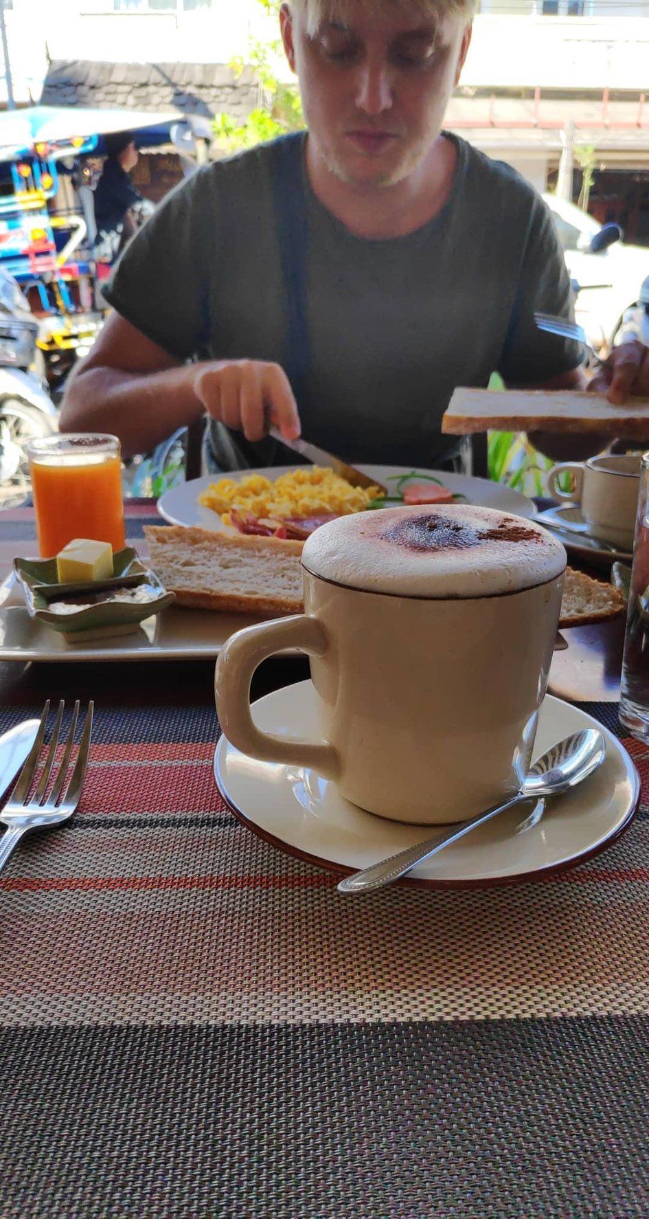 In Vientiane was Friso toe aan een rustdag. S'ochtends zijn we met z'n allen naar een French bakery geweest voor een overheerlijk ontbijt.