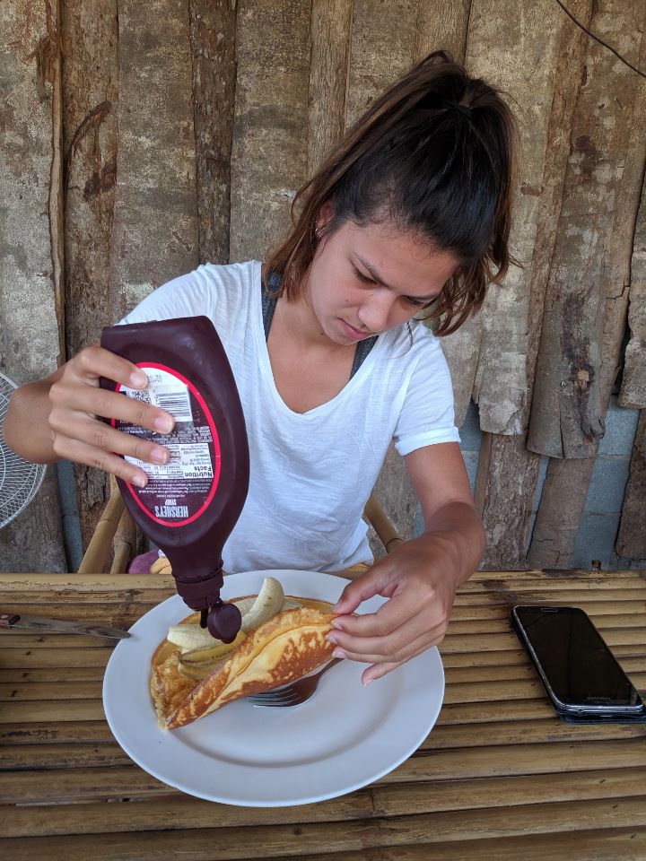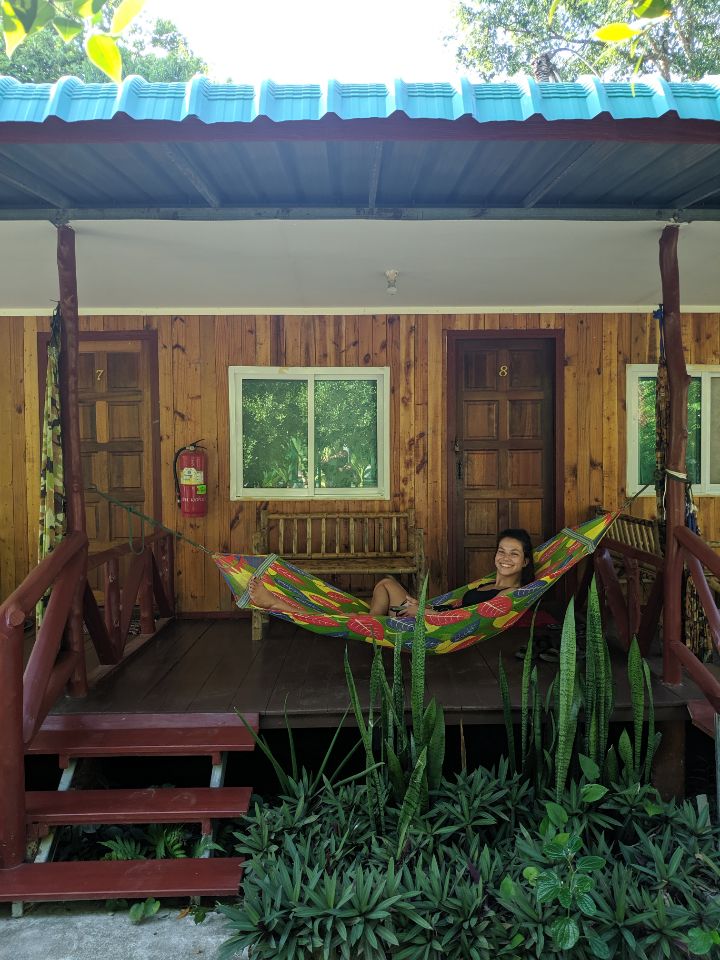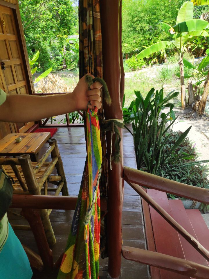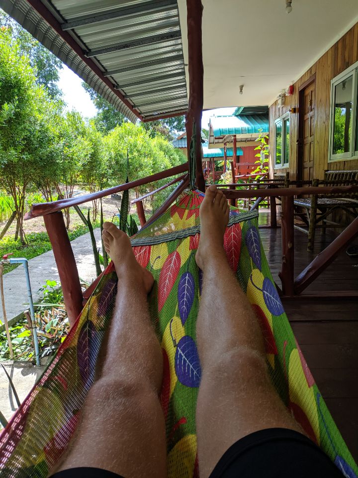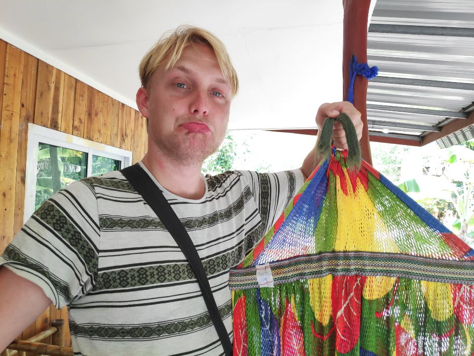 Ons verblijf bij de eerste homestay verliep niet zonder kleerscheuren. Op onze varanda hing een hangmat waarin we enige uurtjes hebben gelegen. Fries maakte nog trots een foto dat hij heerlijk lag, maar vijf minuten later hoorde je een enorme knal. Daar lag ie dan. De eigenaar kwam ook maar een kijkje nemen. Wat bleek, Friso is officieel de nummer drie in vijf jaar tijd waarbij het touw van de hangmat is geknapt. Hij mankeert gelukkig niks! En nee, het komt niet door zijn gewicht. Naast ons lag een veel zwaardere man al zeker 5 dagen aaneengesloten in zijn hangmat. We twijfelen nog steeds of hij daar ook zijn nachten niet doorbracht.