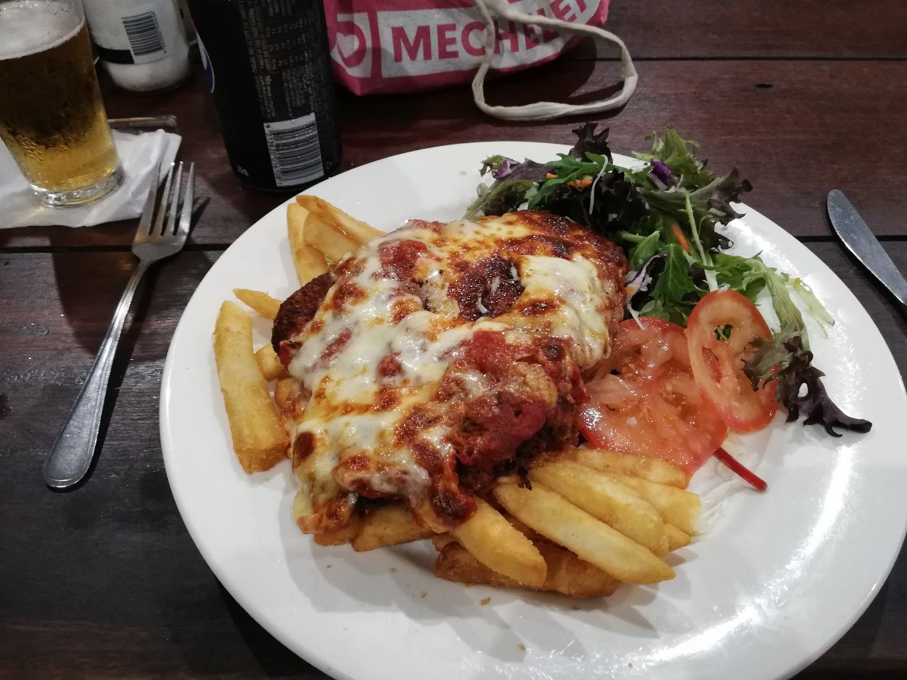 Als afsluiter van een lange reisdag hebben we ons in de plaatselijke pub te goed gedaan aan de lokale keuken, super lekker maar verre van gezond 🙈