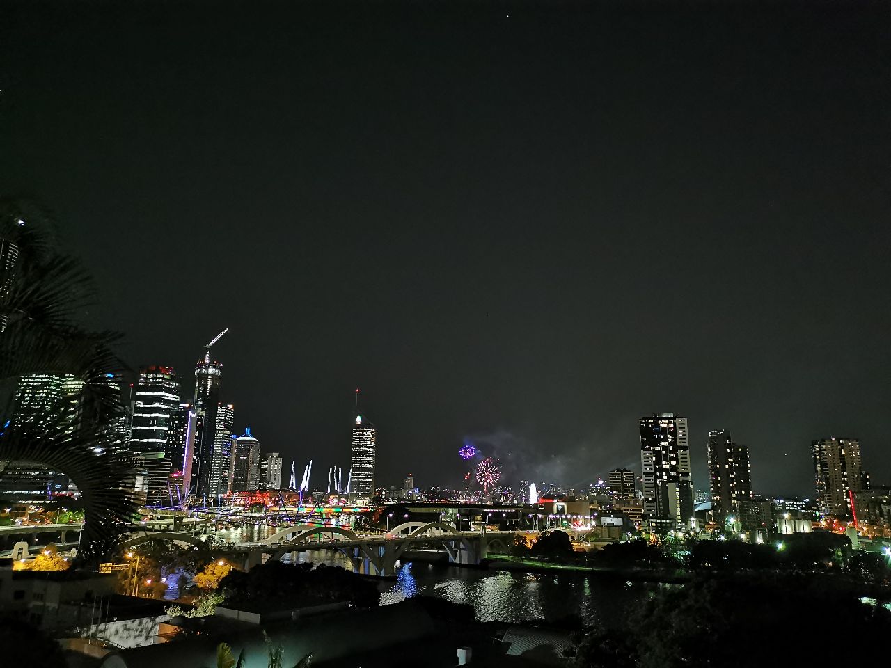 Aangekomen in Brisbane, was de hemel gehuld in een wit pak. Heel bizar om waar te nemen. Ondanks de slechte luchtkwaliteit door de bosbranden konden we ’s avonds nog vuurwerk aanschouwen ✨🤩😯