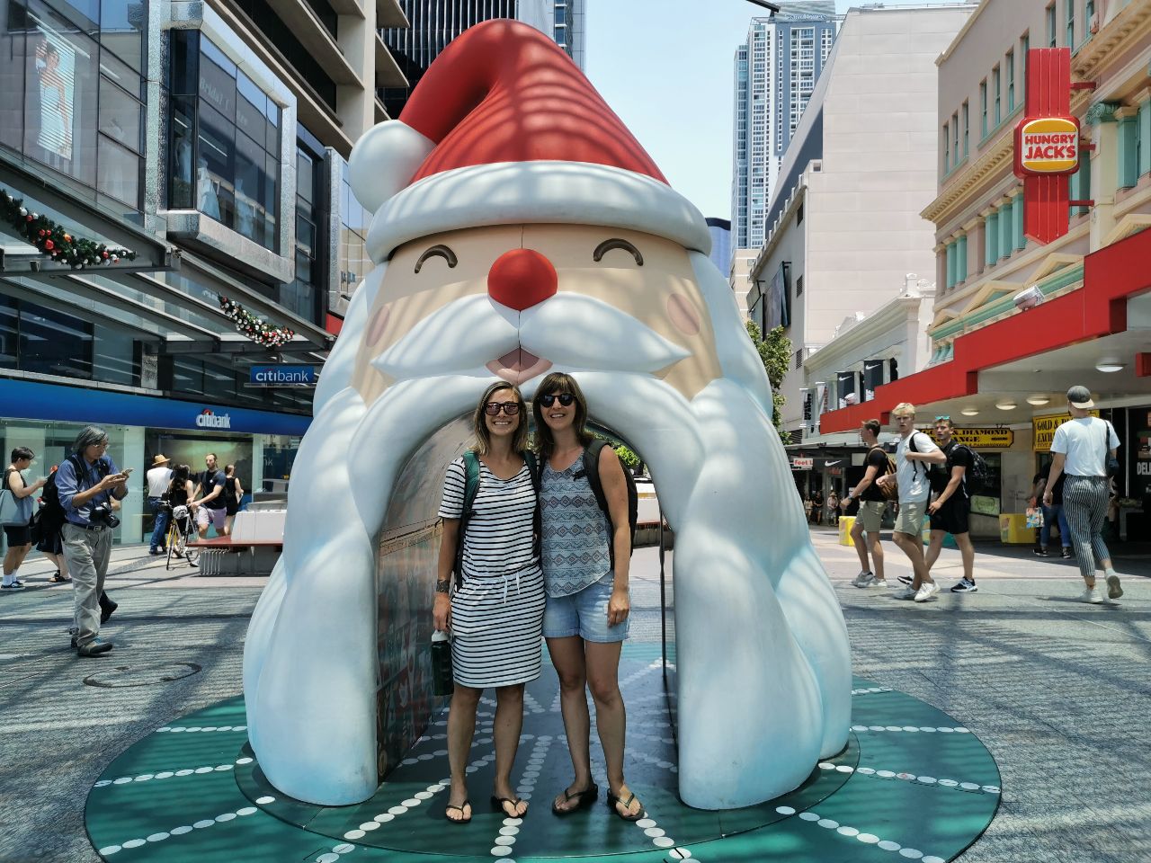 Van smog geen sprake meer, helderblauwe hemel, stralende zon en een vrolijke kerstsfeer in de stad 🎄☀️😃