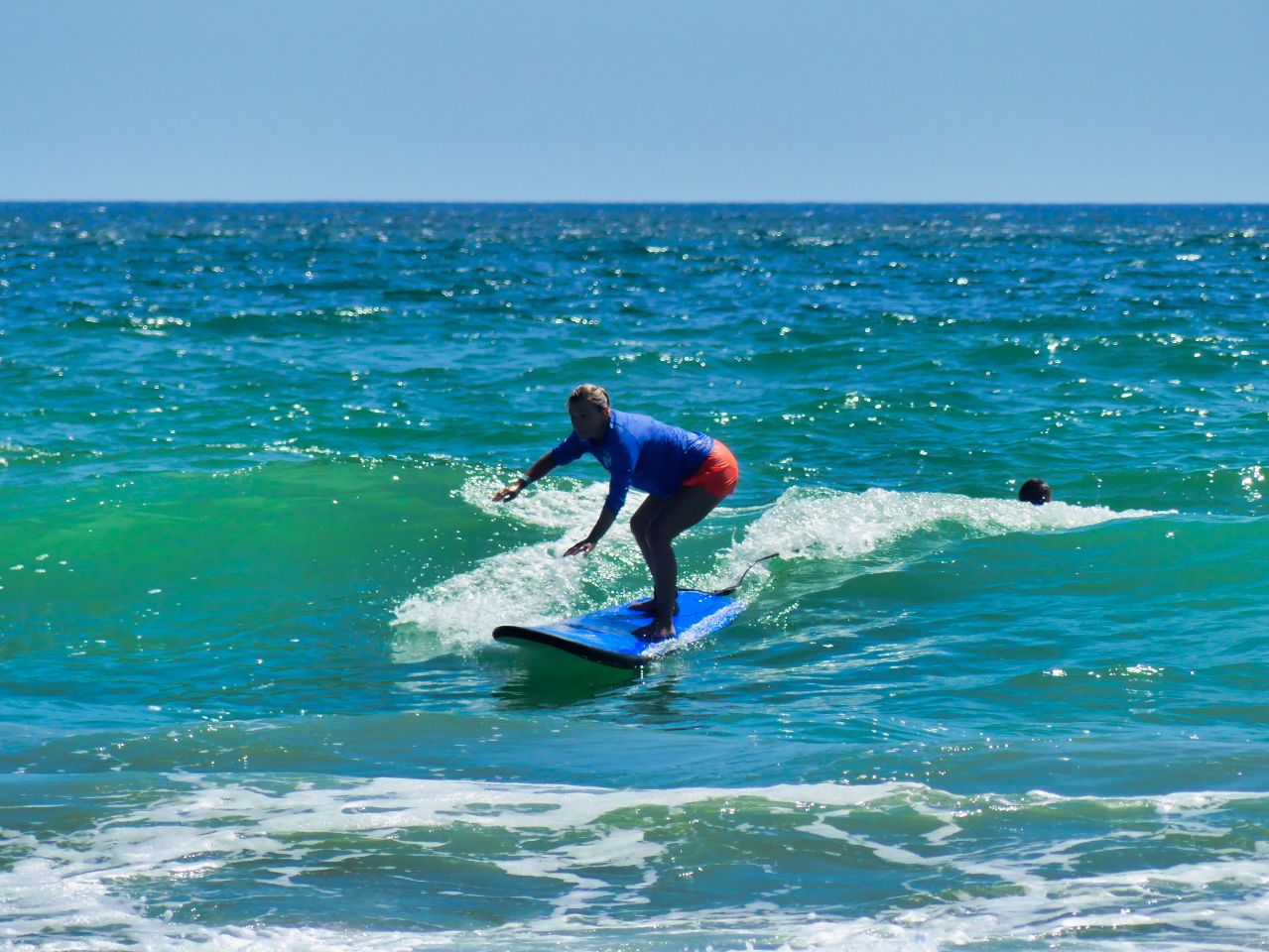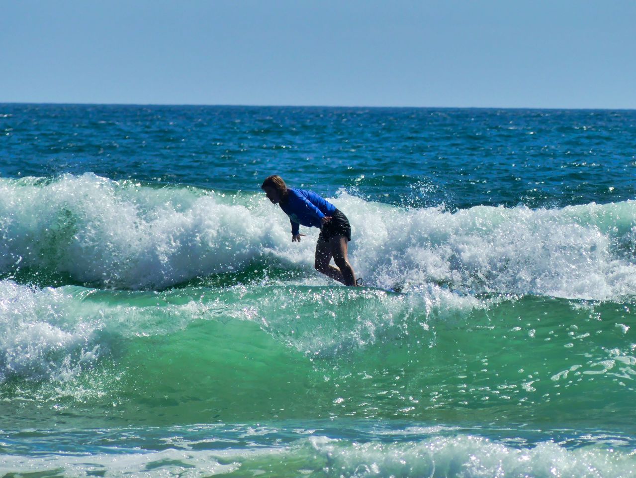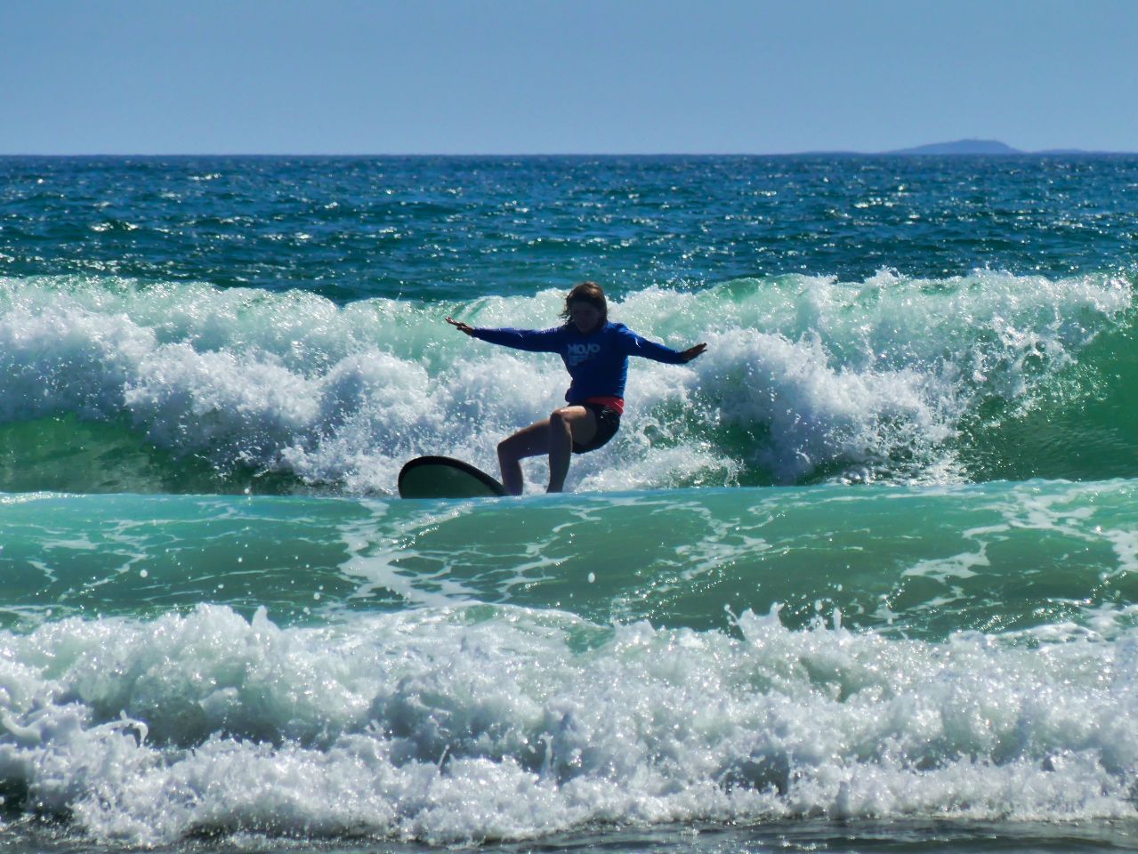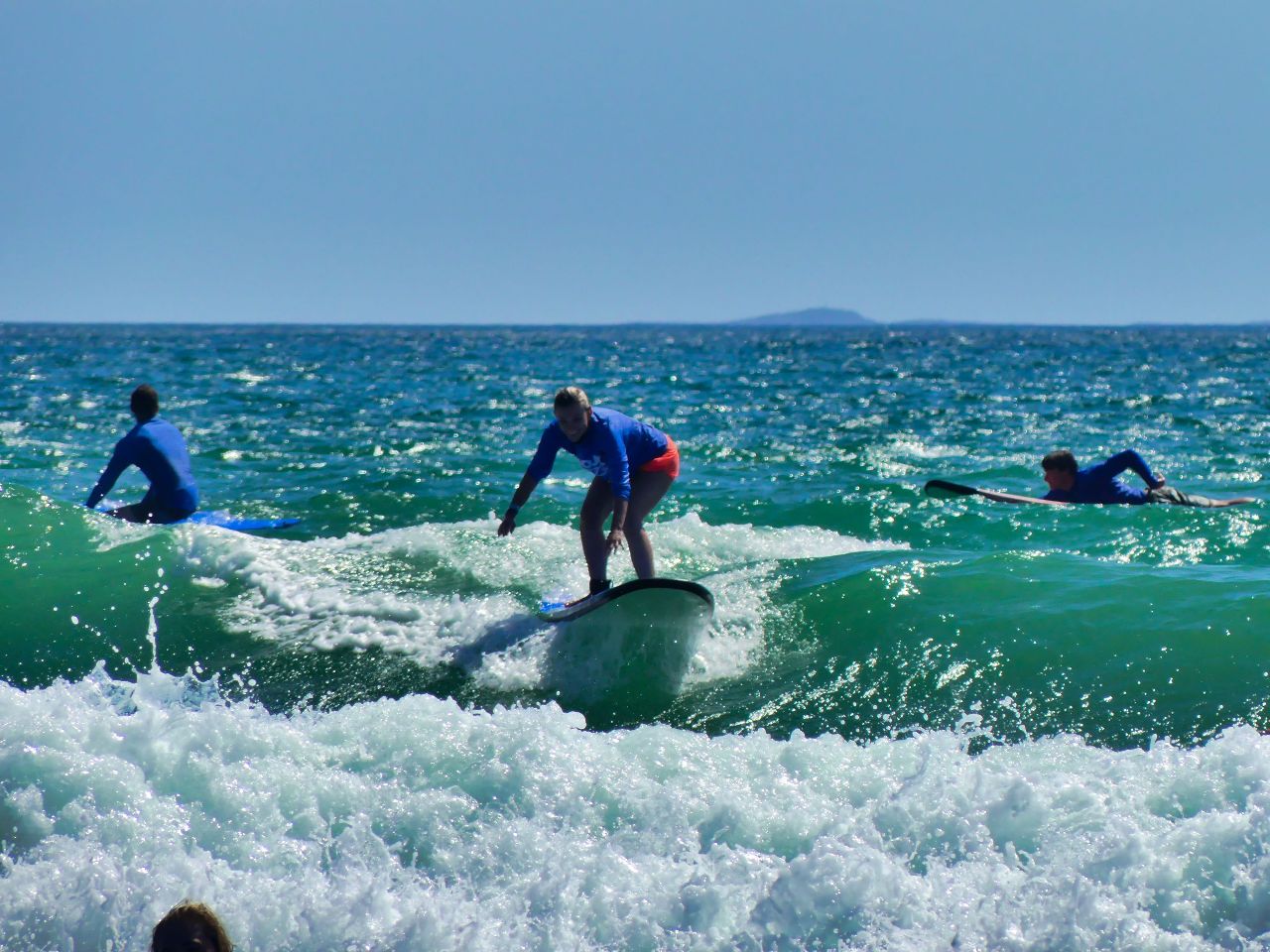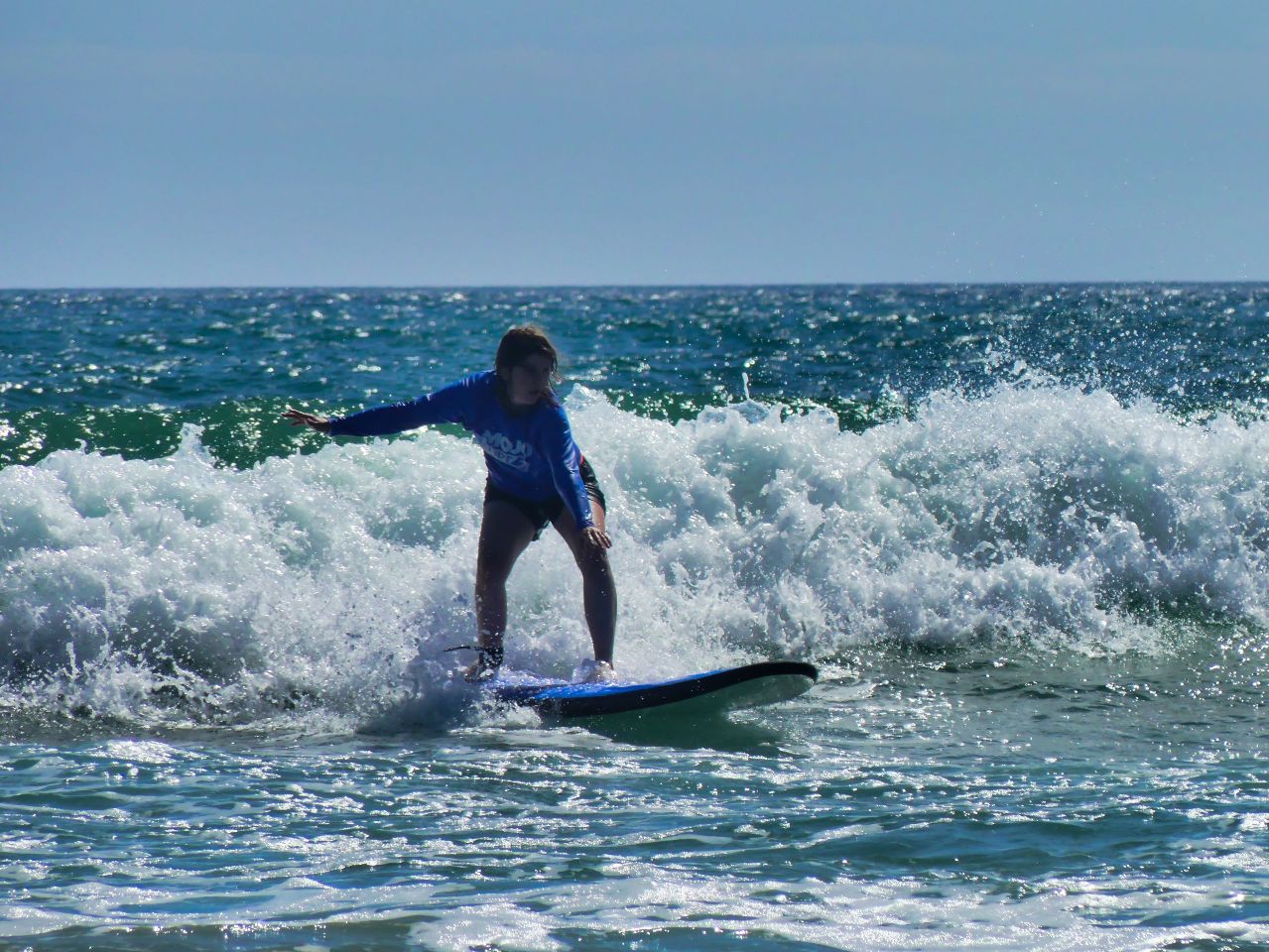 Met dank aan de goede hulp van de leraar is het ook Shari gelukt om een grotere golf te nemen, we hebben allebei de smaak te pakken! 😁🏄♀️