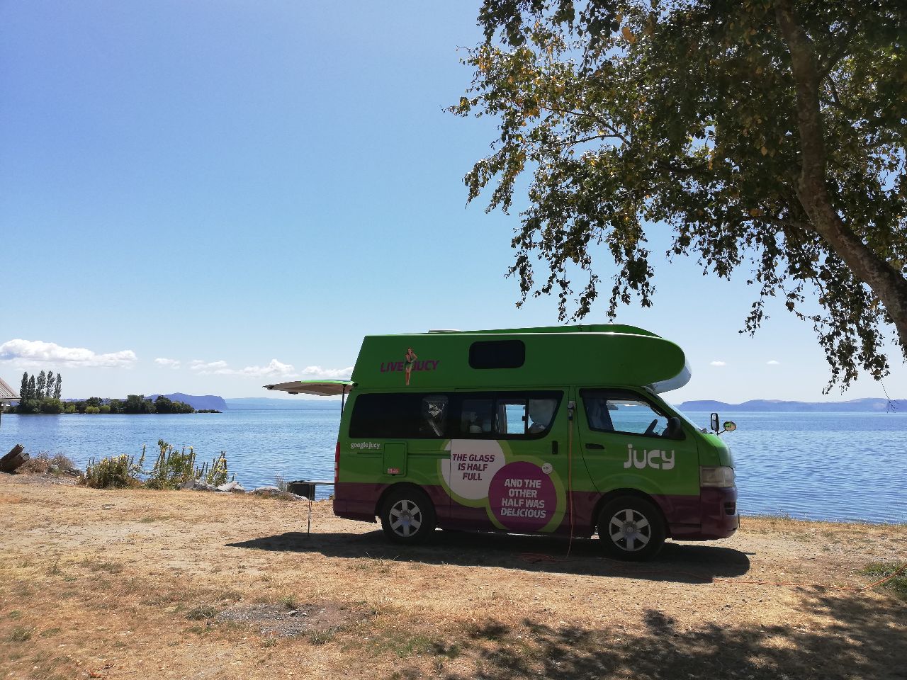 Volgende stop op onze route door deze unieke regio is Motutere Bay, waar we aan de oever van Lake Taupo kamperen.