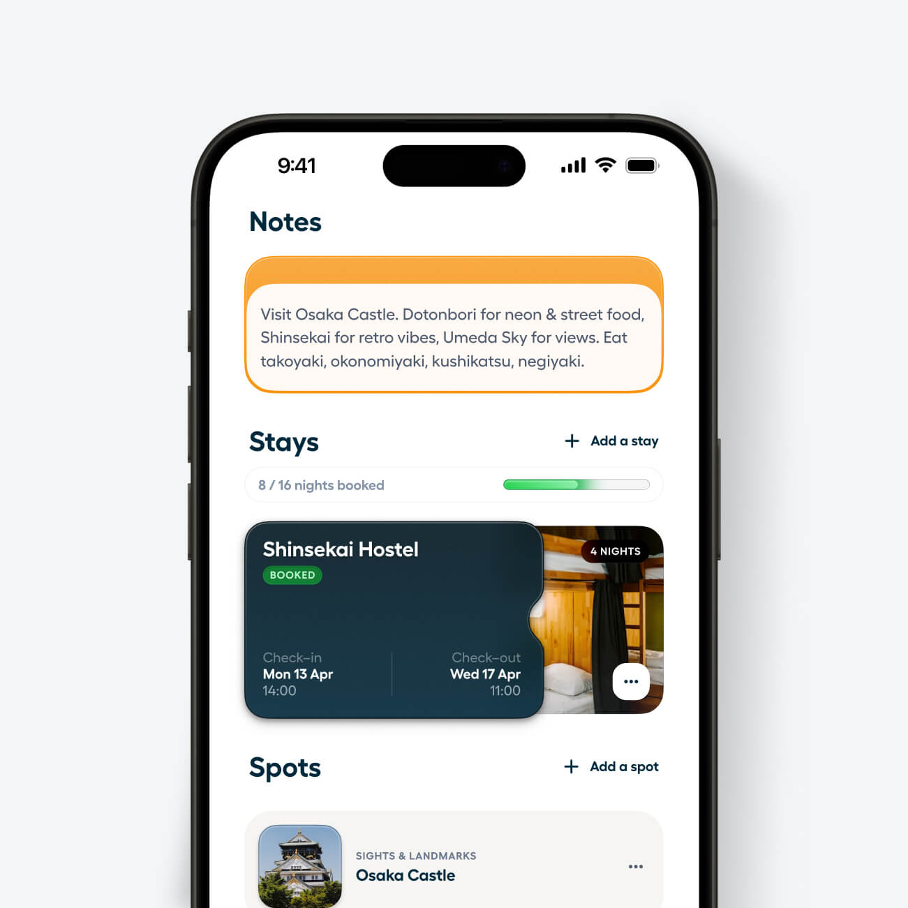 Voeg aantekeningen toe, stuur boekingsbevestigingen door en sla de activiteiten op die je wilt doen. Alles staat op één plek, dus je hoeft nooit meer te zoeken in je e-mails of notities-app.
