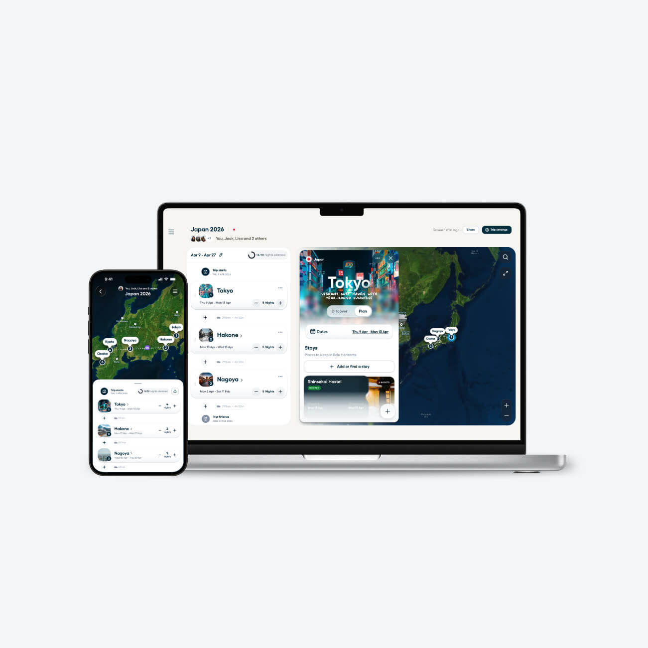 Wissel tussen je telefoon en je laptop zonder iets te missen. Zie meteen alle routes, aantekeningen en spots die je toevoegt, waar je ook bent.